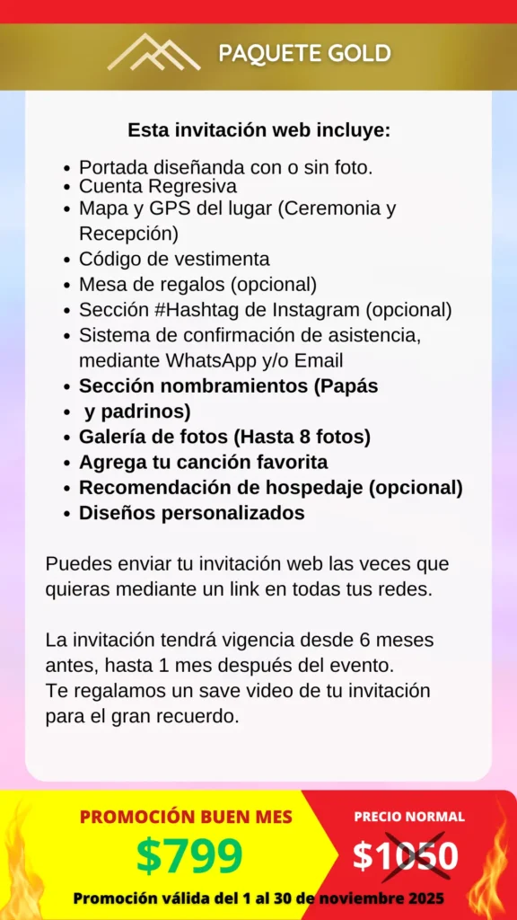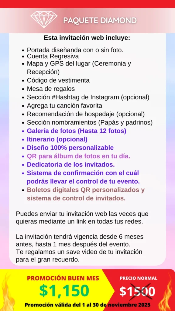 Con nuestras Invitaciones web inteligentes harás que se cumplan todos tus deseos para ese gran día.